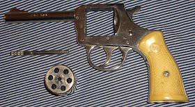 ReplyDeleteMy dad had one just like that in the 9-rd version, pull pin and all. The trigger pull was in the double digits. With dad, that didn't matter. He was a part time blacksmith and I saw him carry 40lb ingots suspended from a single finger.